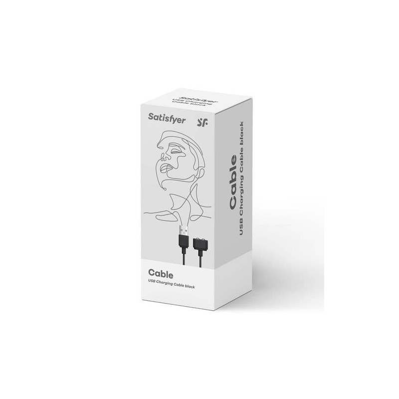 Cable cargador USB magnético original Satisfyer en color negro. Seguro, práctico y compatible con dispositivos recargables magníeticos de la marca.