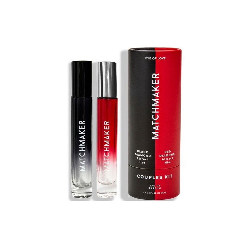 Kit para parejas que contiene un Matchmarker de cada, para seducir a Él y otro a Ella. Elegante frasco de colonia de feromonas con un diseño sofisticado y muy ligero en formato viaje.