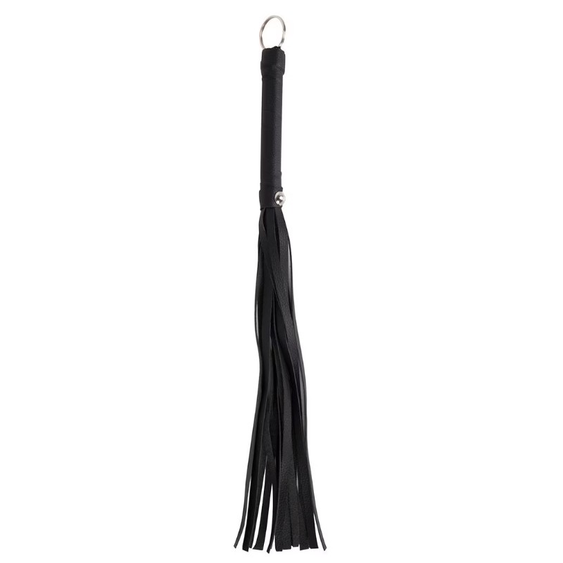 Un látigo no muy grande de 38 cm. de largo en tiras anchas de PVC, perfectos para juegos suaves.