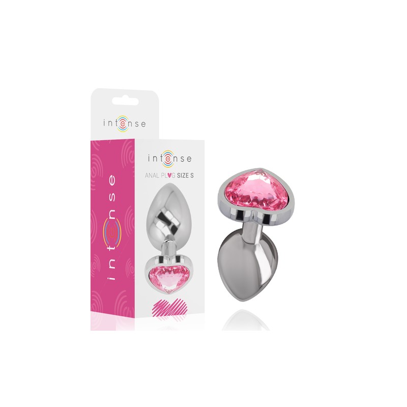 Plug de metal con brillante rosa en forma de corazón, talla S.