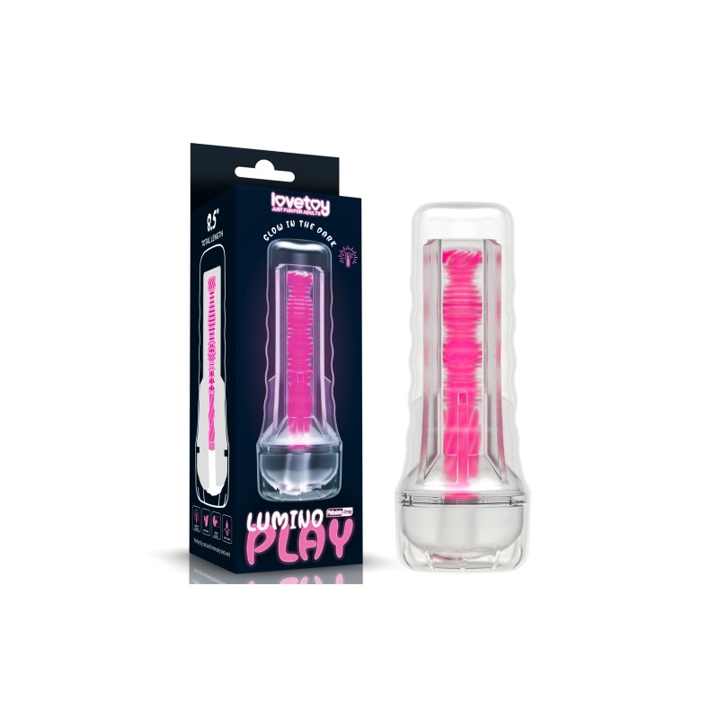 Masturbador Lumino Play con túnel texturizado y efecto luminoso. Fabricado en TPE seguro para el cuerpo, suave, elástico y diseñado para máxima estimulación.